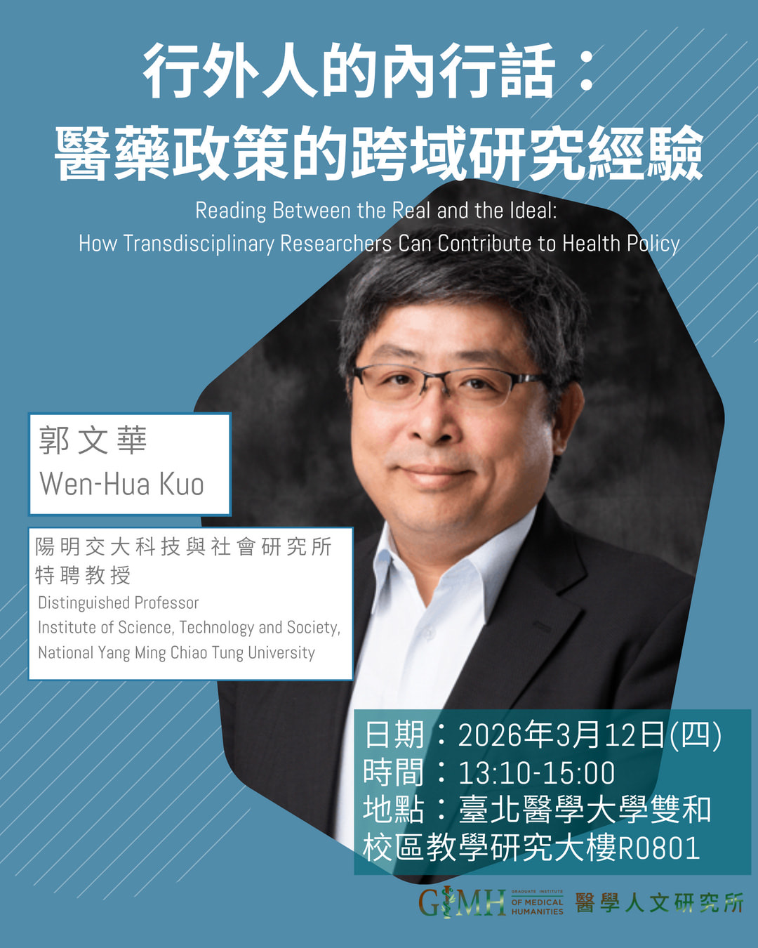 115.03.12 醫學人文專題演講《行外人的內行話:醫藥政策的跨域研究經驗》郭文華特聘教授 (陽明交通大學 科技與社會研究所)