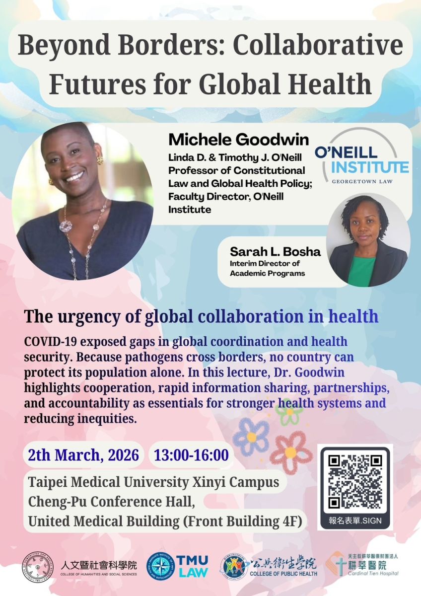 本次講座特別邀請國際知名學者 Michele Goodwin 教授,分享全球合作在健康政策中的關鍵角色,深入探討: