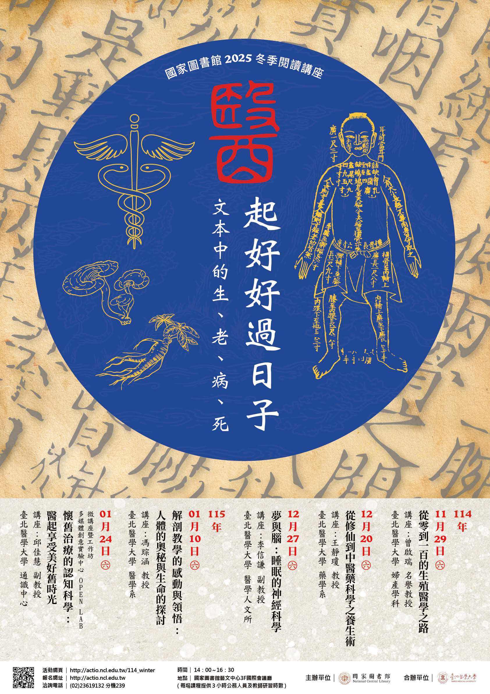 國家圖書館114年冬季閱讀講座:醫起好好過日子──文本中的生.老.病.死