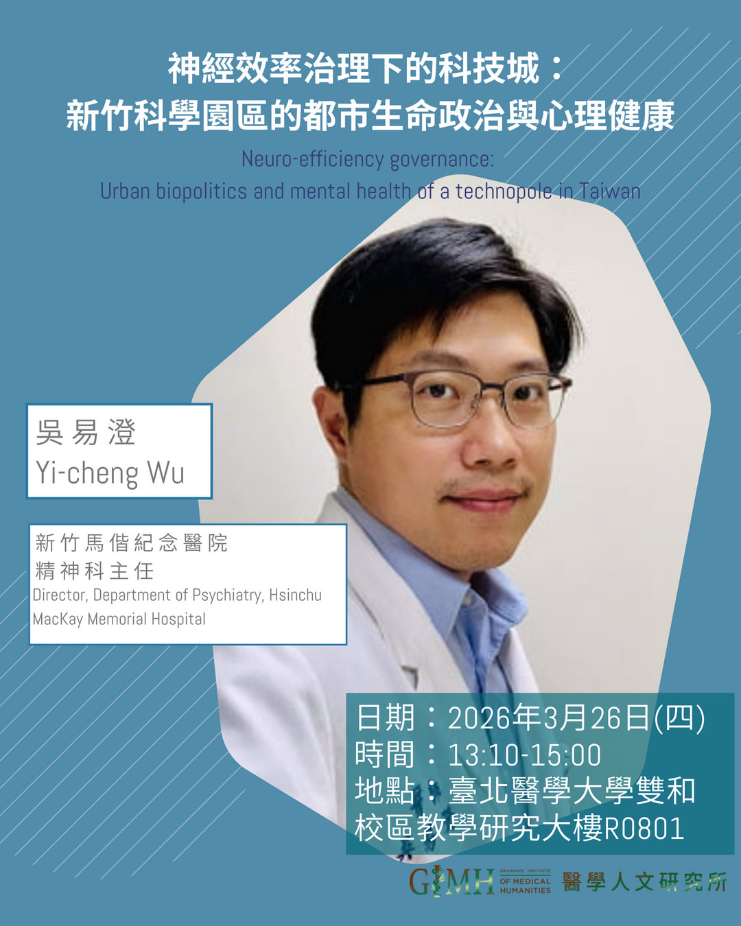 TALK-2025.03.26 1-3 p.m 《Neuro-efficiency Governance: Urban Biopolitics and Mental Health in a Technopole in Taiwan 》